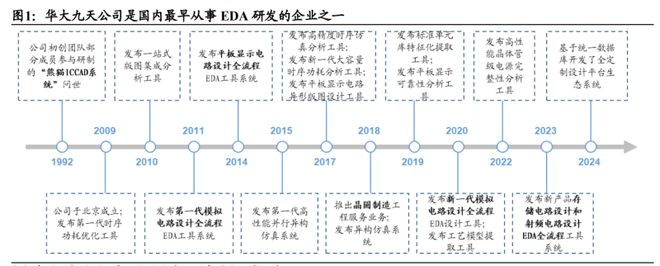 据国泰君安研报,华大九天是国内最早从事EDA研发的企业之一★。90年代初,公司初始团队部分成员,包括创始人刘伟平博士★,参与设计了中国第一款具有自主知识产权的EDA工具——“熊猫ICCAD系统”,打破了国外对EDA工具的封锁。2008年4月★,国务院通过国家科技重大专项“核心电子器件、高端通用芯片及基础软件产品★”★,EDA行业获得支持和鼓励★,国内EDA本土企业陆续出现。2009年6月,中国华大集成电路设计集团有限公司的EDA部门独立,承载了熊猫系统基因的华大九天正式成立★。公司已成为国内规模最大★、产品线最完整、综合技术实力最强的EDA企业。