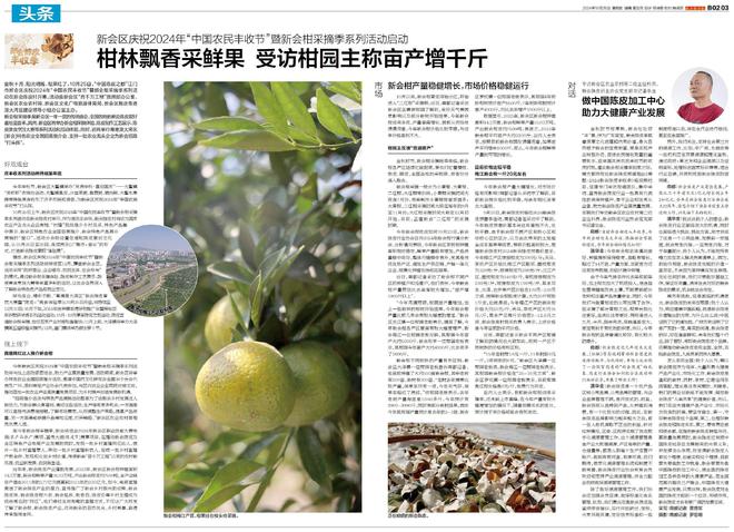 金秋时节柑果熟★,新会处处好★“丰★”景。作为广东首宝,新会陈皮承载着深厚文化底蕴和药用价值★,是大自然赋予新会的宝贵财富,更是实现产业转型升级、促进农民增收致富的重要抓手。在举国共庆农民丰收节的欢庆时刻,值此新会柑采摘季到来之际,南方都市报社新会陈皮频道推出短视频栏目,组建专门采访报道团队,集中采访★、宣传新会陈皮行业一批具有代表性的资深种植户、骨干企业和优秀从业者★,助力新会陈皮产业高质量发展。